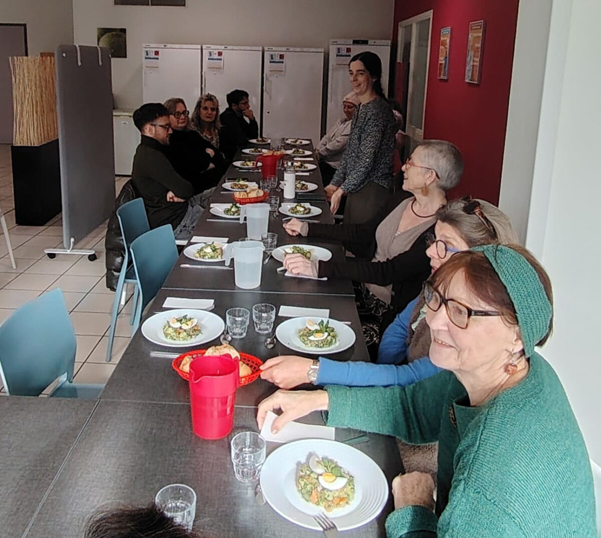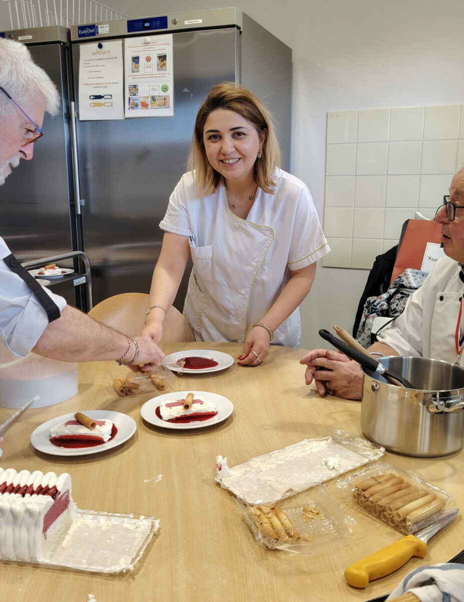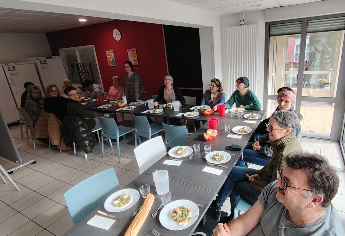 Côté MAH, c’est notre Vice-Présidente Madame Laurent qui a présenté nos missions, et notre Maître de Maison M. Jouini qui a orchestré la visite de l’établissement. Deux Résidents patients, séjournant à la MAH se sont joints à la conférence, à la confection du déjeuner puis au partage du déjeuner très convivial.